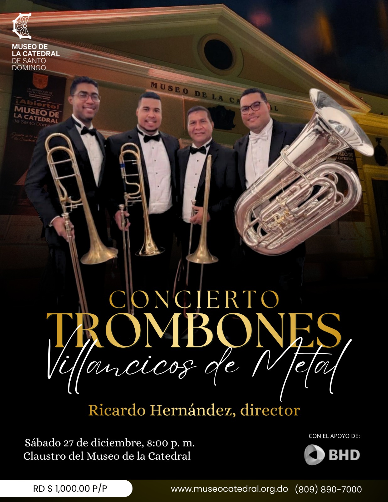 El Museo de la Catedral de Santo Domingo 🏛️ se complace en invitar al público general a celebrar la magia de la temporada navideña con una experiencia musical única: «Concierto Trombones: Villancicos de Metal».
